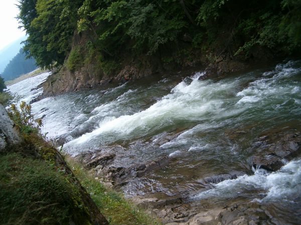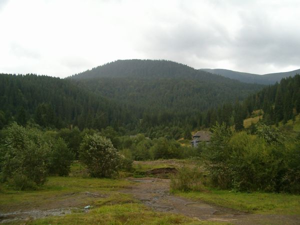Po rozlosování dvojic jsme pokračovali ve stopování, což bylo někdy vzhledem k domluvě problematické, takže někteří došli do údolí řeky Těrebly až téměř se soumrakem. Pokračovali jsme pak vzhůru proti proudu k soutoku s říčkou Ozerjankou a zaplatili vstupné do rezervace ve výši 4 korun. Za setmění jsme pak vystoupili od protržené klauzy k plavení dřeva, v níž dnes sídlí muzeum vorařství, až k horskému jezírku, kde jsme přenocovali ve srubu, za nějž by se nemusel stydět žádný kanadský lovec kožešin.