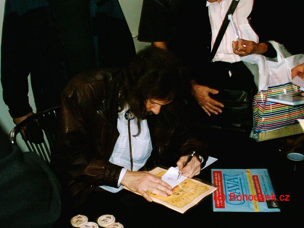 Za stolek, kde se již připravovalo šampaňské ke křtu, dále usedli grafik Oldřich Pošmurný, zpěvák Pavel Bobek, kreslíř Milan Teslevič, autorka scénáře ke komixu Ivana Peroutková, kytarista Jan Matěj Rak a zpěvák František Vlček. Slavnostní okamžik nastal symbolicky ve 13 hodin 13 minut, kdy Pavel Bobek provedl samotný křest knihy.