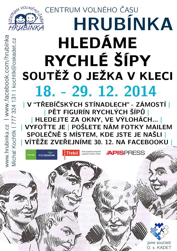 Hned po Večeru světel pro Vás po Židech schováme Rychlé šípy. Dokážete je najít?" Tak inzerují organizátoři z Centra volného času Hrubínka pátrací hru Hledáme Rychlé šípy v Třebíči. Zkuste je najít, nakreslit, vyfotografovat...