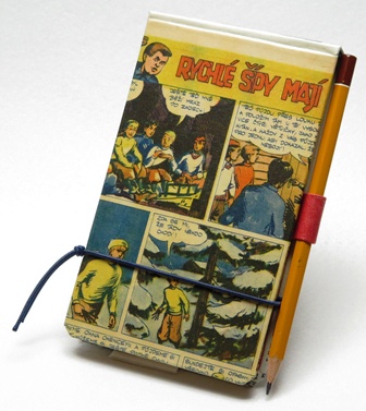 Dělejte si poznámky stylově – pořiďte si zápisník Rychlých šípů![ Autor: Roman Šantora - Bobo | zařazeno: 13. 6. 2018 | přečteno 11639 ] Jaroslav Foglar byl od dětství, prožitém v papírnickém krámu své maminky, okouzlen vůní papíru, tužek a barviček. Proto i jeho byt takový obchod v mnohém připomínal. Stovky různě barevných skicářů, notesů, průklepáků, kartonků promísených tužkami, pastelkami a fixy. Po Jestřábově odchodu jsme nechtěli papírový poklad odklidit do nenávratna, ale poslat ho dál. Proto vznikla sada unikátních zápisníků vyvázaná z prázdných papírů uchovaných v bytě slavného spisovatele. Obaleny jsou do obrázků ze starých poničených vydání komiksu Rychlé šípy, věnovaných obětavými dárci, kterým velmi děkujeme. Zápisník připravila Skautská nadace Jaroslava Foglara a knihařská dílna Skoba u příležitosti Roku Rychlých šípů. Cena zápisníku je 300, – Kč, výtěžek z prodeje je věnován na podporu mimoškolní výchovy dětí a mládeže v duchu skautských ideálů. Můžete ho zakoupit na výstavě Pocta Rychlým šípům v Galerii Lucerna v Praze. K shlédnutí je tam i rychlošípácký komiks o výrobě zápisníku! Pospěšte si, prvních sto kusů už je vyprodaných a další mizí kosmickou rychlostí! Zápisník bude k dostání i na setkání foglarovců ve Sluneční zátoce v sobotu 16. 6. 2018. Pokud vlastníte staré roztrhané příběhy Rychlých šípů, například ze Vpředů či PULSu a byli byste ochotni je věnovat na výrobu další série zápisníku, pište na fondfoglar@skautskanadace.cz, lze je předat i na zmíněném setkání ve Sluneční zátoce.