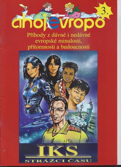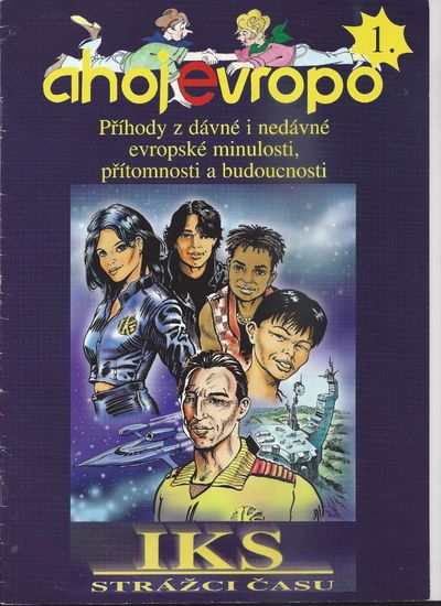 Píše se první rok 22. století, čili 2101. Ke kosmické stanici Institutu kosmického sledování (= IKS) se blíží transportní raketoplán. Na jeho palubě jsou i čtyři kadeti - studenti Gymnasia kosmické přípravy z Prahy. Kadeti ještě netuší, že se z nich mají stát Strážci času, kteří na palubě experimentálního časostroje prožijí neuvěřitelná dobrodružství. Tahle čtyřka nebude proti tomu, když se přidružíte a na palubě Exíku, jak časostroj nazvou, s nimi budete cestovat do minulosti deseti evropských zemí. Na závěr se ještě se Strážci času IKS zúčastníte putování slavného poselstva českého krále Jiřího z Poděbrad z Čech až na konec světa. Kreslený seriál dle scénáře Vlastislava Tomana nakreslili Michal Kocián, Vladimír Bican, Zdena Kocourková a Václav Pergler. Knihu s rozsahem 160 stran formátu A4 vydalo nakladatelství Olympia. Strážci třetí generace První příhody klubu Strážců jsem začal psát pro časopis ABC v roce 1967. Tehdy časopis organizoval zájmové pionýrské kluby, a to raketové posádky se zaměřením na techniku, hlídky přírody se zaměřením na ochranu přírody a konečně dívčí kluby s poněkud pestřejším programem. Po Rychlých šípech Jaroslava Foglara, které svá dobrodružství prožívaly především v první polovině 20. století, Strážci už byli kluci žijící v období poválečného rozvoje vědy a techniky i vstupu člověka do vesmíru. A byla tu hojně zastoupená i děvčata z klubu Vlaštovek. Námětů pro kreslený seriál jsem měl dostatek, ať už ze svých klukovských let, která jsem prožil v rodné Plzni, nebo ze života kluků a děvčat, čtenářů ABC a jejich klubů. Aktuálně jsem přidával i motivy, které přinášela tehdejší doba. Pro postavy Strážců jsem vybral své plzeňské kamarády a do jedné postavy, Hadžiho, jsem se vtělil i já. I když se tahle parta nestala tak legendární, jako (několikrát zakazované) Rychlé šípy, zůstala populární po několik čtenářských generací. Přidat však můžeme ještě dvě knihy s příběhy ze života Strážců. První s názvem Trampoty s kapitánem (Jihočeské nakladatelství, 1981) líčí dobrodružství Strážců se záhadným kapitánem Nemem, druhá, Trampoty na pokračování (opět Jihočeské nakladatelství, 1987), se odehrává jak ve městě, tak na jednom z přehradních jezer. Prvním ilustrátorem Strážců byla Libuše Kovaříková, která ztvárnila 80 epizod. Po ní převzal kreslení Strážců František Kobík a namaloval 96 dalších pokračování. S celkovým počtem 176 stran se tak Strážci stali třetím nejdelším klubáckým komiksem po Rychlých šípech. V roce 1984 museli však i Strážci skončit, neboť jejich činnost prý nebyla plně v souladu s tehdejším zaměřením a činností Pionýrské organizace Socialistického svazu mládeže. A teď se asi zeptáte, kdy a kde se objevili Strážci druhé a třetí generace. Kupodivu vznikali téměř současně a to v devadesátých letech minulého století. Začal jsem pro časopis ABC psát komiks Parta z bílých domů o příhodách kluků a děvčat ze sídliště. Takových míst je po republice mnoho a všude najdeme šikovné kluky a děvčata, ale i party záporáků. I když časopis ABC stále existuje, jeho kluby už dávno skončily. A já chtěl novým čtenářům ábíčka nabídnout příhody party, která se takovým klubem stane sama od sebe. Tři kluci a dvě děvčata, inspirováni starými výtisky časopisu, chtějí prožívat svá dobrodružství jako jejich dávní předchůdci. Napsal jsem tehdy scénáře pro patnáct epizod Strážců z bílých domů a kreslíř Michal Kocián je nakreslil. Redakce ABC však změnila názor a rozhodla, že komiks v časopisu publikovat nebude. Ve spolupráci s nakladatelstvím BBart však v té době vycházely Velké knihy komiksů ABC a tak ve 4. svazku byly zařazeny nejen příhody „starých“ Strážců, ale i oněch zmíněných 15 epizod. Takový tedy byl osud Strážců 2. generace. To už však začalo 21. století a Česká republika se připravovala na vstup do Evropské unie! A já dostal nečekanou nabídku! Česká rada Pionýra připravovala k vydání sešity s názvem Ahoj, Evropo! Měly dětem a mládeži nabídnout zajímavé informace o Evropské unii. Proč EU vznikla, kdo je jejím členem, jakou má funkci, jaké jsou její orgány, proč tam Česká republika hodlá vstoupit a co pro to musí udělat. Současně měly Ahoje představit i základní členské země a já měl o každé zemi připravit komiks s námětem z historie nebo současnosti, nějakou výraznou zajímavost či událost a tak podobně. Jak jen tohle zvládnout? Dost jsem se tím trápil, až mě napadl „stroj času – časostroj“, který by tohle mohl zvládnout. Jenže! Koho do časostroje posadím, kdo s ním poletí? Přece parta z roku 2101! A budou to Strážci času! Nebudou to ovšem kluci nebo děvčata z nějakého běžného gymnázia či odborné školy, ale přímo studenti z pražského gymnázia kosmické přípravy! Pošlu je na praktický výcvik do Institutu kosmického sledování (IKS)! Odtud budou na časostroji navštěvovat a poznávat jednotlivé země! Vzniklo tak 145 stran komiksu, které najdete v této knize. Tak jsem se rozhodl a tak to také vedení České rady Pionýra schválilo. Začal jsem psát komiks o Strážcích času IKS pro sešity Ahoj, Evropo. Ty byly tehdy dodávány jen do pionýrských skupin a oddílů nebo různých výchovných zařízení a škol. Nyní se Strážci třetí generace dočkali souborného vydání a tak jste na palubu Exíka, jak ta parta časostroj nazvala, pozváni i vy z roku 2018! Zábavnou, možná i trochu poučnou, ale hlavně dobrodružnou cestu vám přeje Vlastislav Toman, autor námětu a scénáře