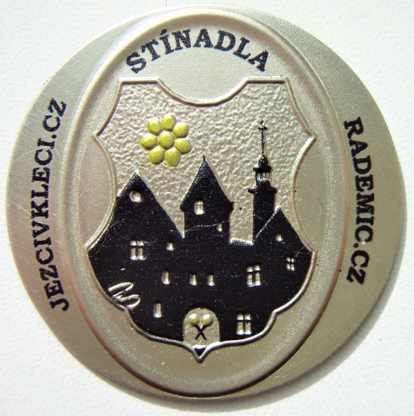 Výrobce hlavolamů, zvláště pak ježků v kleci, Radek Micopulos nabízí nově pěkný odznak – magnetku z kovu s barevným plasticky raženým erbem Stínadel. Objednat lze na stránkách www.jezcivkleci.cz. Cena magnetky je 49 Kč.