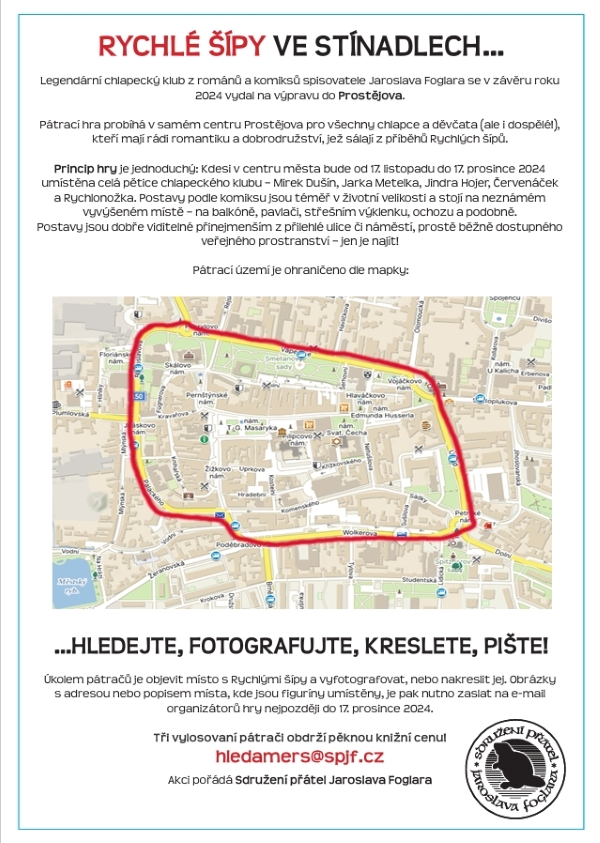 Pátrací hra probíhá v samém centru Prostějova pro všechny chlapce a děvčata (ale i dospělé!), kteří mají rádi romantiku a dobrodružství, jež sálají z příběhů Rychlých šípů.