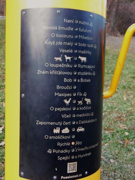 V parku Folimanka, v úzkém výběžku Vinohrad těsně oddělených Botičem od Nuslí, co by kamenem dohodil od několika nuselských bydlišť malého Jaroslava Foglara, vyrostl úplně první a zatím jediný dětský Poesiomátek a to v barvě žluté. Snad právě proto z něj nemůže zaznít nic jiného, než začátek Záhady hlavolamu.