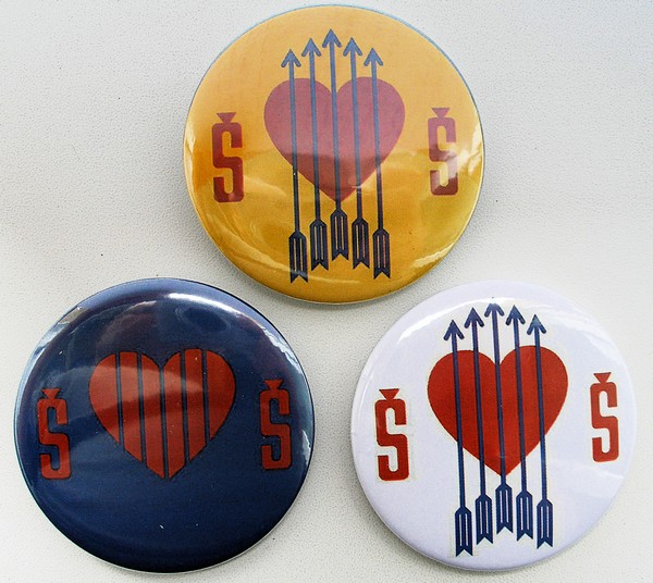 Klub Šlechetných šípů, o kterém jsme se již zmínili má také svůj znak! Placku se znakem klubu si mohli členové vlastnoručně vyrobit při založení klubu, a to hned ve třech barevných variantách. Obr. klub ŠŠ