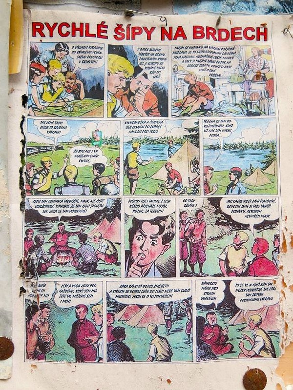 Že by nějaký dosud neznámý příběh Rychlých šípů? Ale ne. To jen na vývěsce brdské T. O. Westend se tento příběh složený ze dvou skutečných dílů Rychlých šípů objevil jako upoutávka a pozvánka na akci místních trampů! Zvláště nás zaujala Červenáčkova slova ve čtvrtém okénku: ŽE BYLI ALE S VYHLÁŠENÍM CHKO RYCHLÍ ! Slova, která jasně vyjadřují postoj trampů a obecně nás všech – milovníků svobodného pohybu v přírodě k neustále se stupňujícím snahám nejrůznějších „ochranářů“ tuto svobodu omezit. Obr. RŠ NA BRDECH
