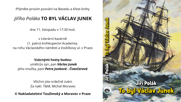 (17. 11. 2025, 1249x) • Beseda a křest knihy Jiřího Poláka To byl Václav Junek o akademickém malíři, který namaloval nejenom Slabikář, ale také Rychlé šípy, proběhne 11. 11.