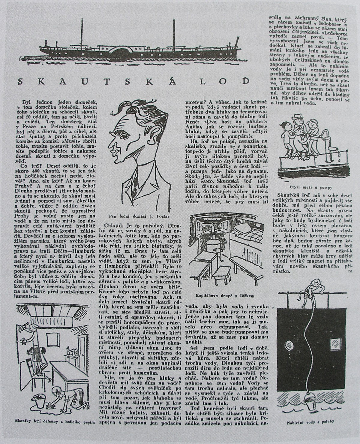 V roce 1935 navštívil Jaroslava Foglara na lodi Skaut novinář a spisovatel Ondřej Sekora. O své návštěvě Sekora napsal reportáž do Lidových novin, kterou doprovodil několika humornými kresbičkami a také karikaturou Jaroslava Foglara.
