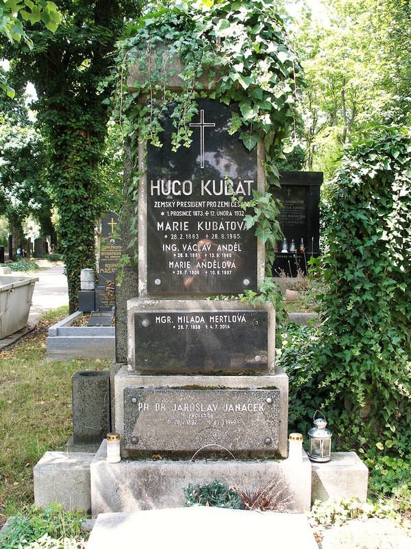 Hrob Hugo Kubáta na MalvazinkáchNedaleko Sekorova hrobu se nachází také hrob muže, který s J. Foglarem sice nikterak přímo nesouvisí, ale vzdáleně snad přece jen trochu: Jde o zemského presidenta pro Zemi Českou Hugo Kubáta. A trampové vědí – byl to právě Hugo Kubát, který v roce 1931 podepsal vyhlášku namířenou proti „výstřelkům campingu a trampingu“, známou též jako Kubátův zákon – Lex Kubát. Ale pokud se na procházku hřbitovem vypravíte a v žilách vám proudí směs foglarovské i trampské krve, odpusťte mu…